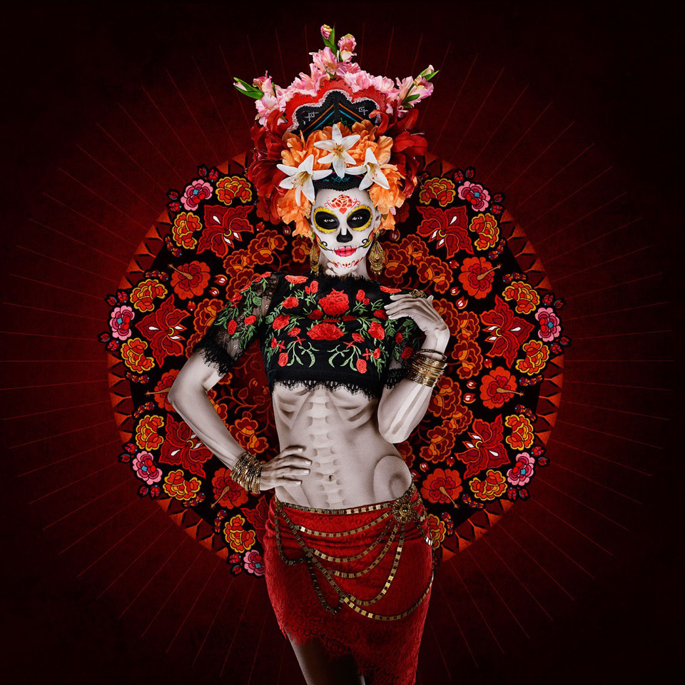 Hoy hemos hablado de la catrina en clase,  de su autor de José Guadalupe Posadas, y de su críticas a la clase poderosa con esta señora canina ricamente vestida. Y justo hoy me he  encontrado  el trabajo espectacular de un fotógrafo americano Tin Tadder que ha recreado a esta reina de la muerte Mictecacihuatl en una serie de fotografías titulada «Las muertas». Para el maquillaje y ropas han colaborado con él otras dos artistas: la maquiladora  Krisztiana y la diseñadora de modas Julia Reeser.