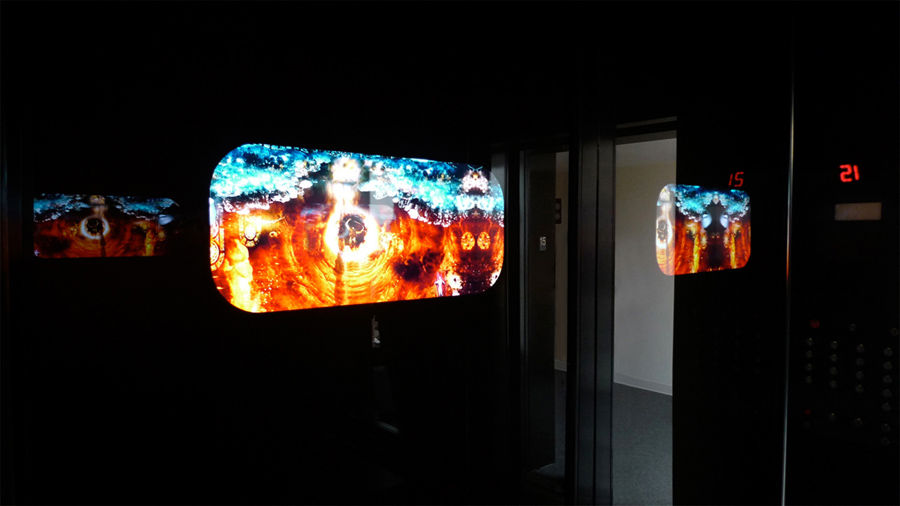 Curiosa video instalación ubicada en un ascensor del Hotel The Standard Hotel de  New York. Una versión bastante libre del cuadro del Jardín