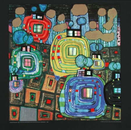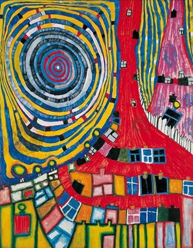 Hundertwasser no fue sólo un pintor, fue un artista global seducido por la idea de que un mundo mejor, más pacífico y más cerca de la naturaleza era posible. Su trabajo creativo se diversificó en múltiples tareas: pintor, escultor, diseñador de filatelia, de banderas, y sobre todo de una nueva arquitectura protagonizada por la línea curva y el color que consideraba más cercana al hombre que la racionalidad de la línea recta dominante nuestras ciudades.
