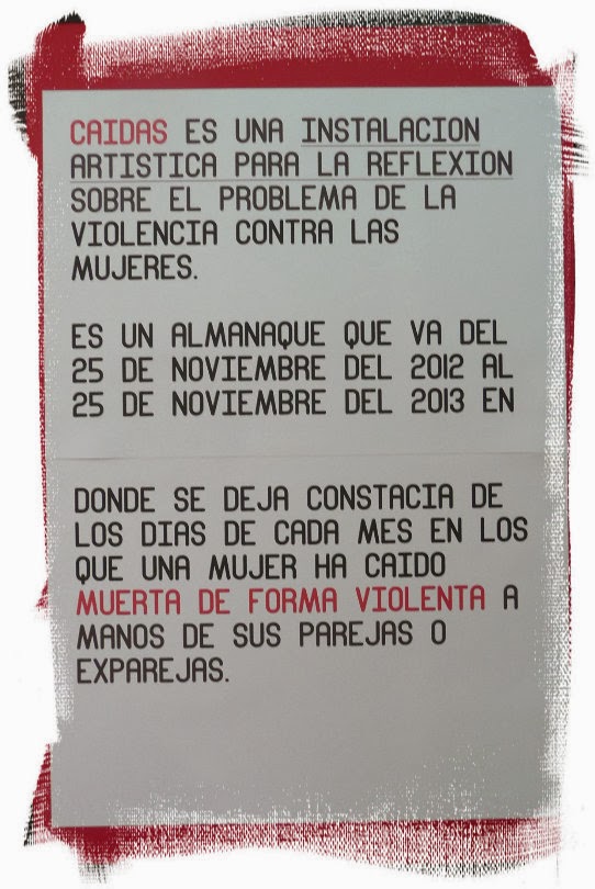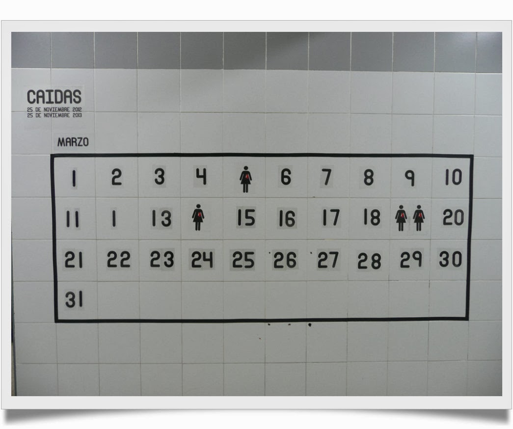 Excelente, de lo mejor que he visto en este tipo de instalaciones contra la violencia de género, a veces ya tan manidas. Soberbia la utilización de los azulejos como soporte al almanaque. Mi enhorabuena Mayalen.