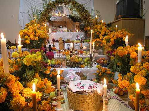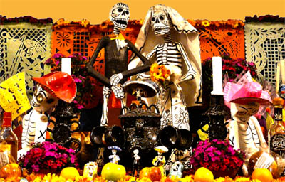 día de muertos en Mexico es una fiesta en la que se mezclan tradiciones prehispánicas con elementos de la religión cristiana. Se cree que los familiares ya fallecidos visitan a los vivos. Para su festejo se monta un altar al