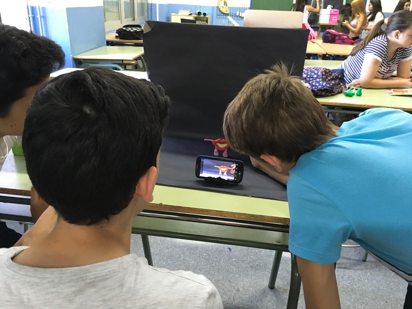 Hemos trabajado con los móviles de los alumnos utilizando la APP gratuita STOP MOTION. Como siempre todo ha costado el doble de sesiones de las que pensaba utilizar y unos han trabajado mejor que otros pero creo que ha sido una experiencia estupenda para todos, que les ha ayudado a hacer suyas las responsabilidades del trabajo  en común, el conseguir materiales, aprovechar el tiempo etc etc.